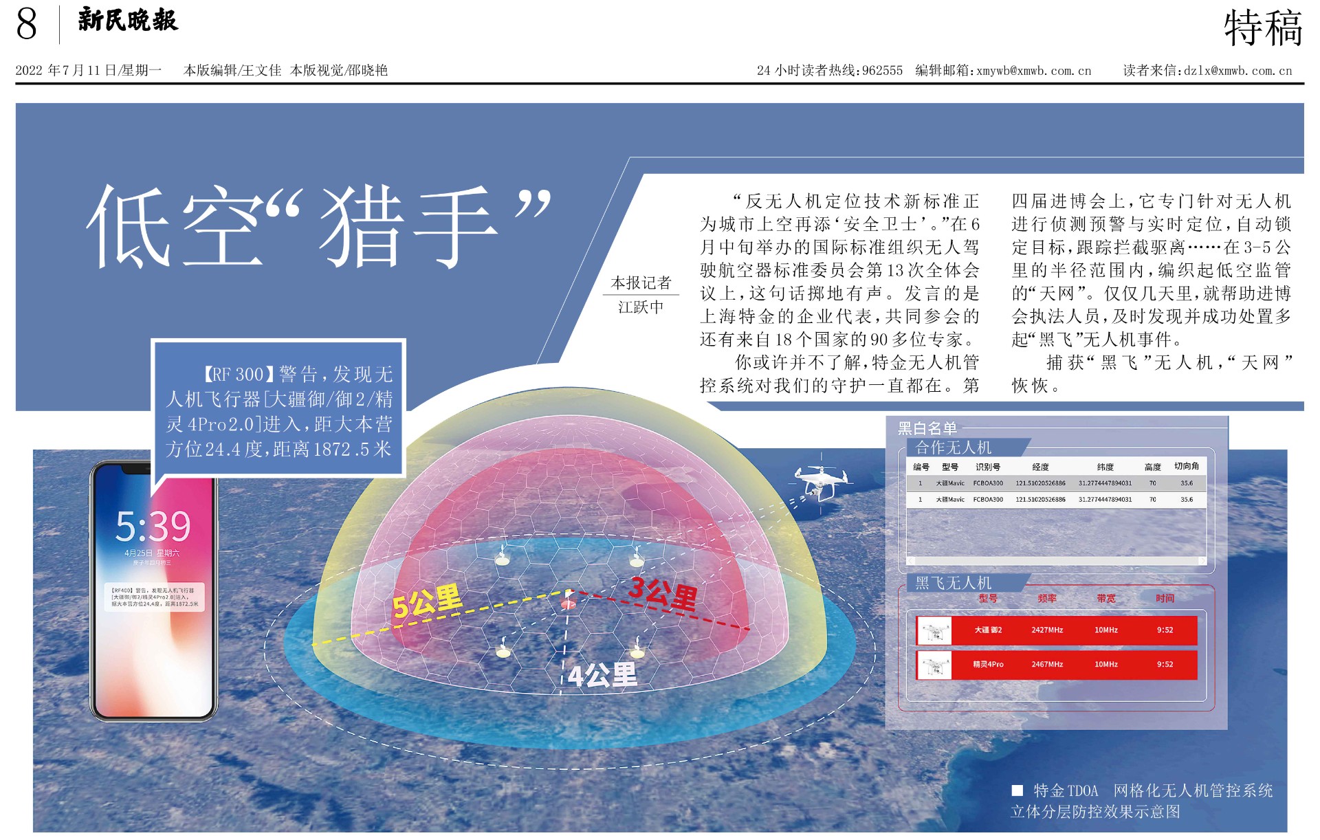 “反无人机定位技术新标准正为城市上空再添‘安全卫士’。”在6月中旬举办的国际标准组织无人驾驶航空器标准委员会第13次全体会议上,这句话掷地有声。发言的是上海特金的企业代表,共同参会的还有来自18个国家的90多位专家。