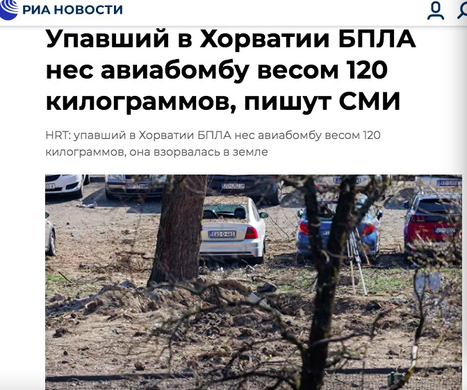 海外网3月14日电 综合俄罗斯卫星通讯社、克罗地亚国家广播电视台(HRT)13日报道,克罗地亚国防部消息人士透露,当地时间3月11日,一架苏联制无人机携带一枚120公斤重的炸弹,在克罗地亚首都一处坠毁。飞机在地面砸出大坑并发生爆炸。