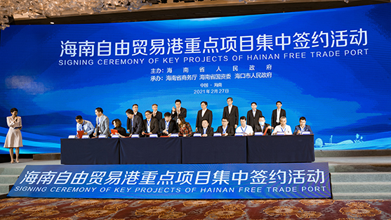 2月27日下午,海南自由贸易港2021年(第一批)重点项目集中签约活动在海南海口举行,共签约34个高质量项目,协议投资总额约138亿元。海南省委副书记、省长冯飞,海南省委常委、海口市委书记何忠友,海南省委常委、秘书长孙大海,海南省委常委、三亚市委书记周红波(三亚分会场),副省长王路、刘平治、沈丹阳等出席并见证项目签约。